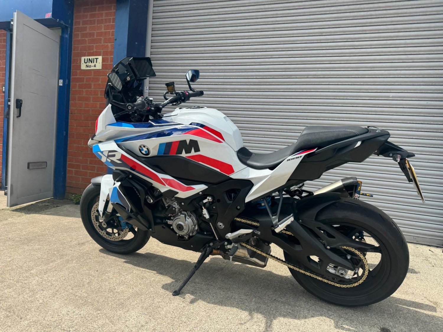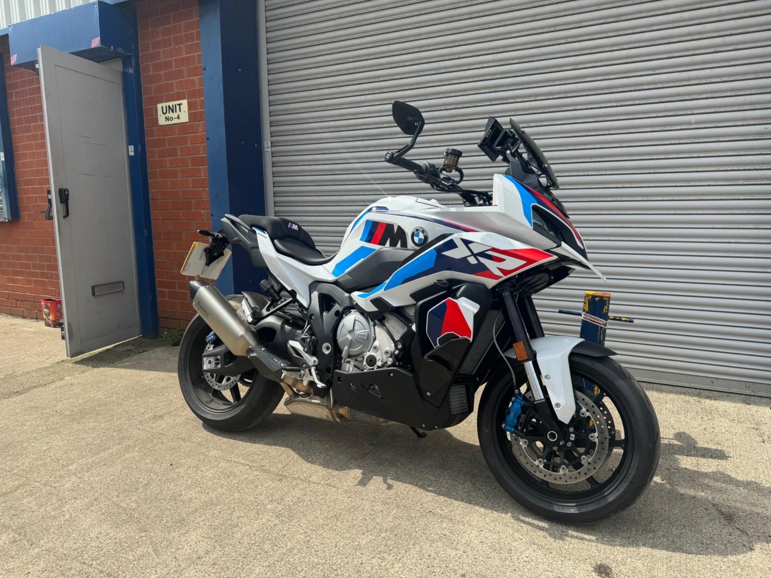 Check out this brand-new BMW M1000 XR in Motorsport Colours with Bar End Mirrors. It’s got some cool features like an Akrapovic Sports silencer, a 6.5” TFT-Display with connectivity, Dynamic ESA, Gearshift Assist Pro, Cruise Control, heated grips, suspension strut rear (adjustable rebound, compression stage spring preload), M Winglets, 7 riding modes (Rain, Road, Dynamic, Race, Race Pro 1-3), Pit-Lane-Limiter, Hill Start Control (HSC) Pro, Headlight Pro with Adaptive Headlight, LED tail light, indicators daytime riding light, M Front Brake, tinted high windsheild, M Lightweight Battery, BMW Motorrad ABS Pro and Dynamic Traction Control (DTC) +/- Shift. This is the lightest and most powerful production crossover bike in the world. No kidding!