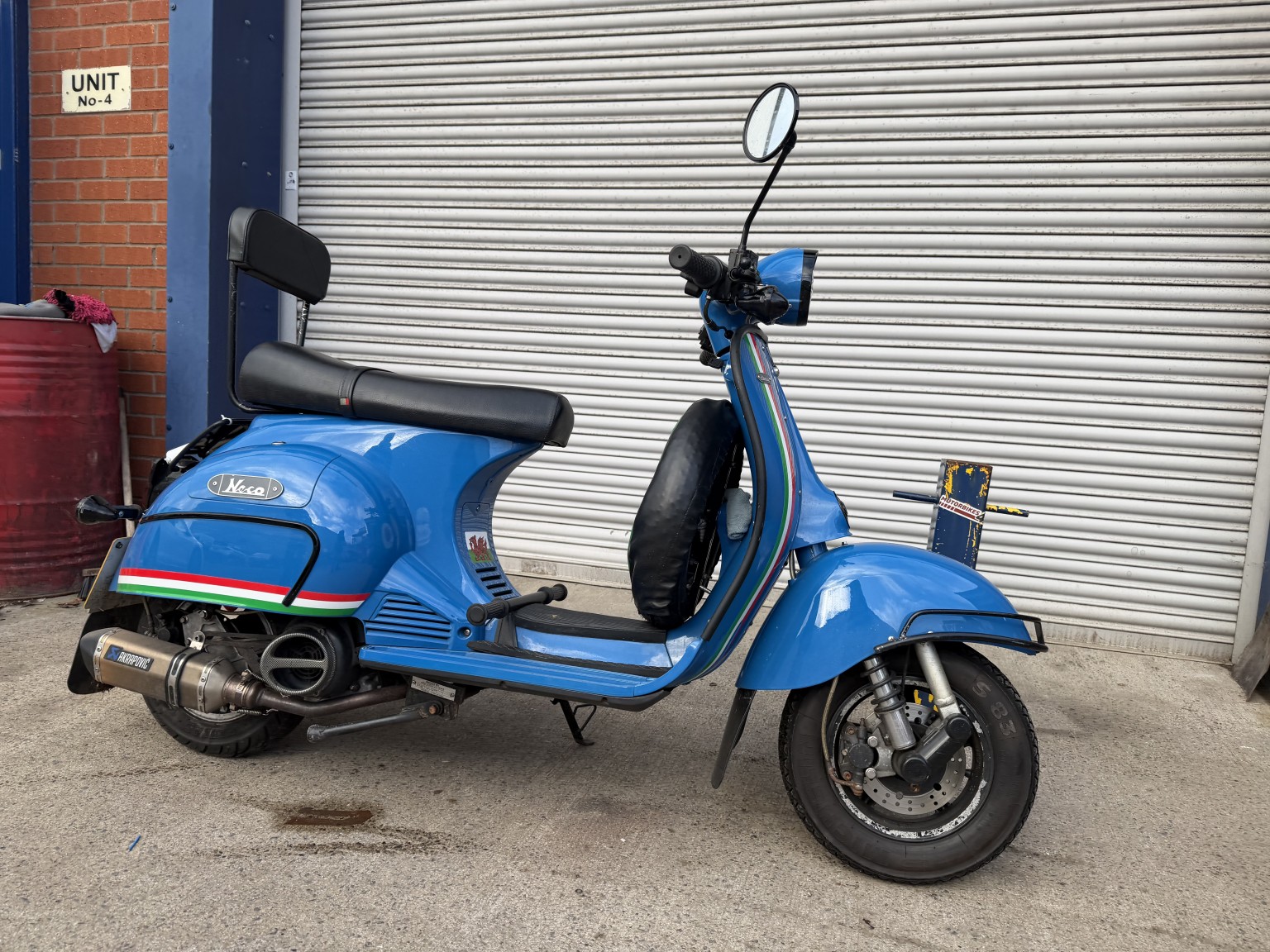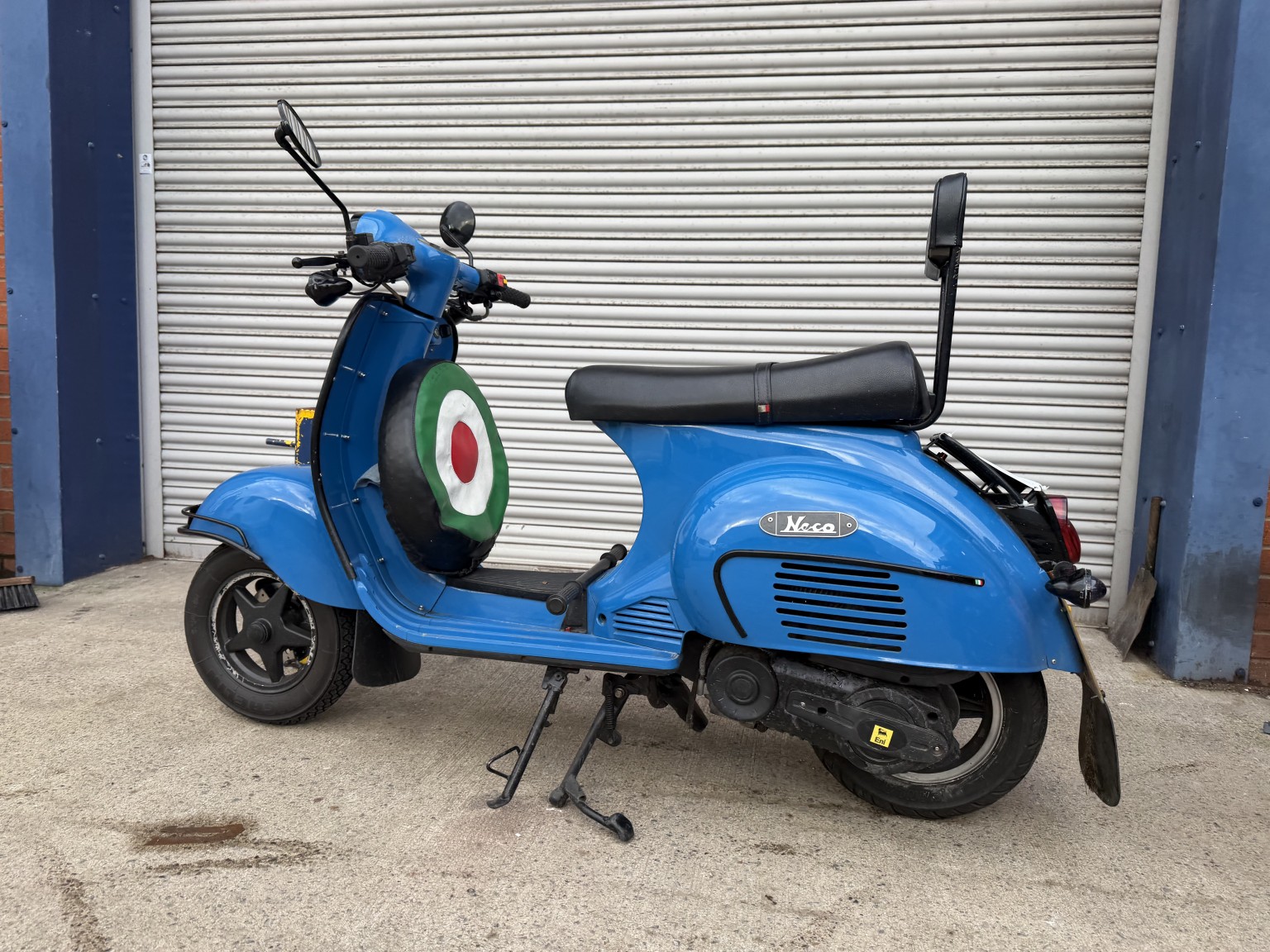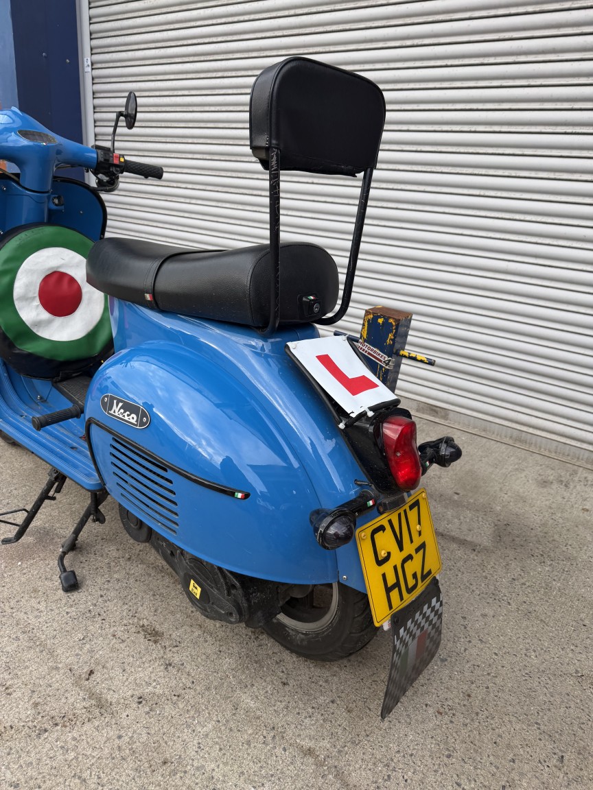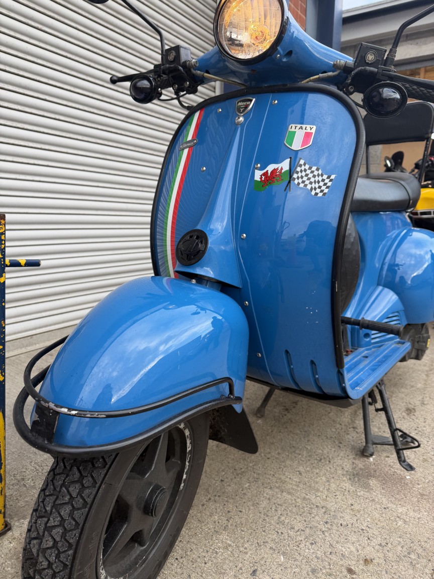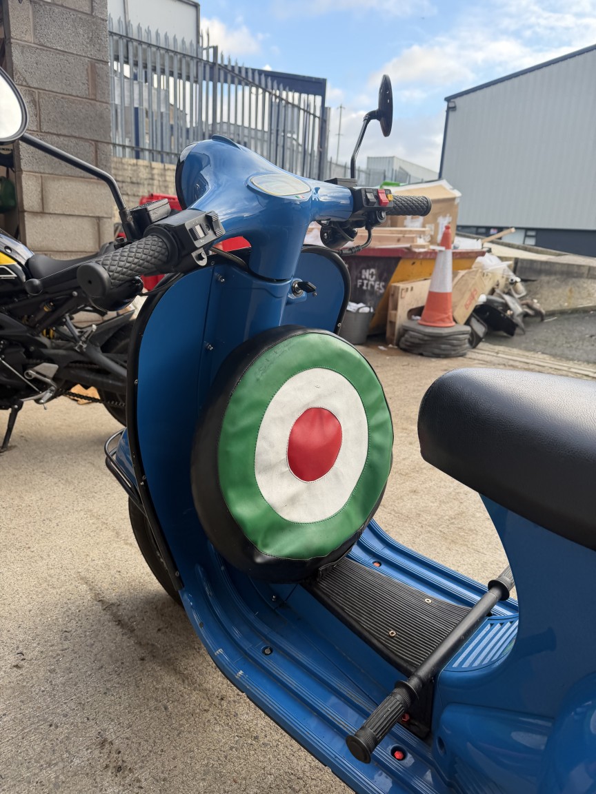 It looks similar to a classic Vespa but with modern reliability, making it perfect for everyday rides or weekend cruising.