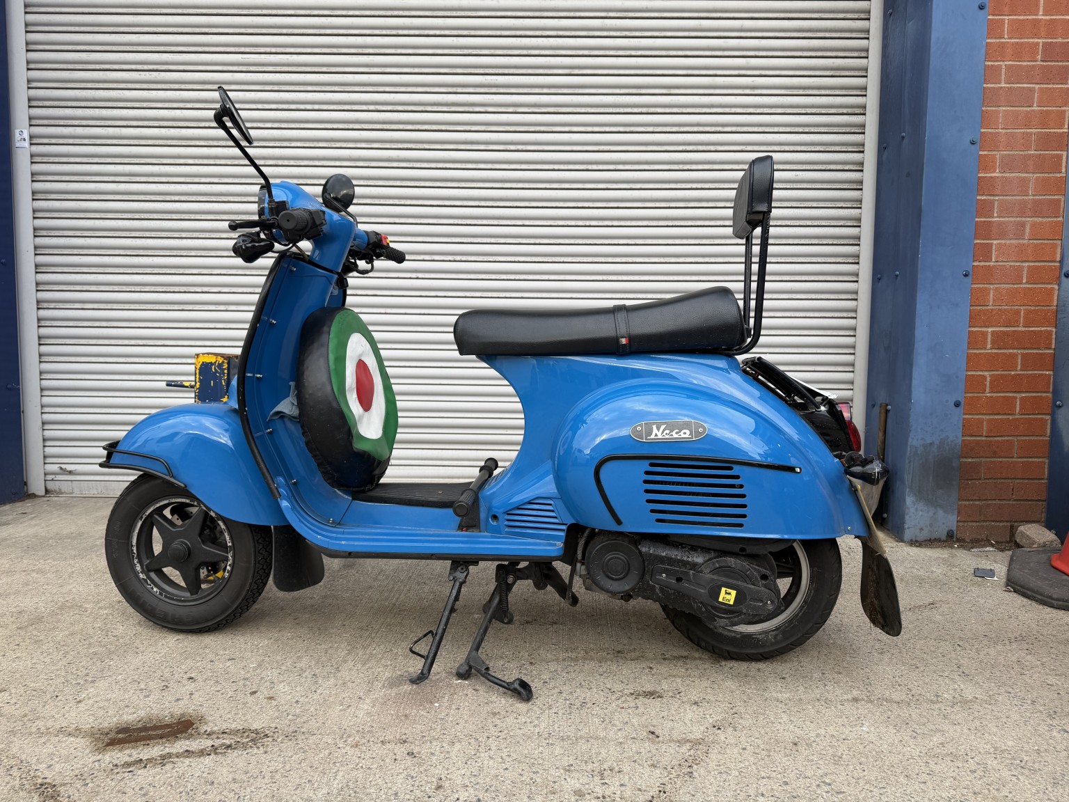 It’s fitted with an Akro exhaust and has loads of tasteful extras. A lot of money has been spent to give it its unique retro look.